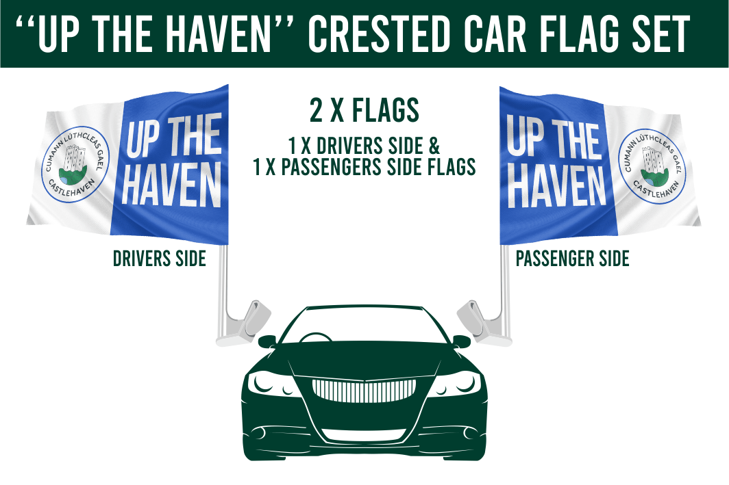 Castlehaven GAA Club ''UP THE HAVEN'' Crested Car Flag Set
