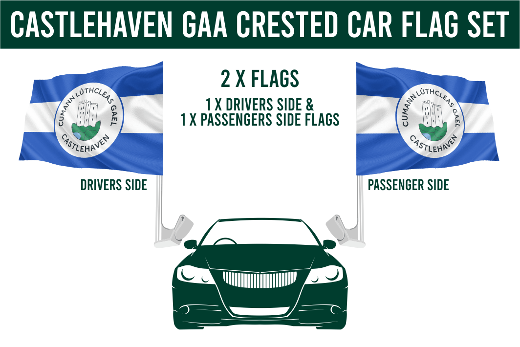Proudly support Castlehaven in style with our top-quality car flags, carefully made in Dublin, Ireland. Let your team's colours fly!