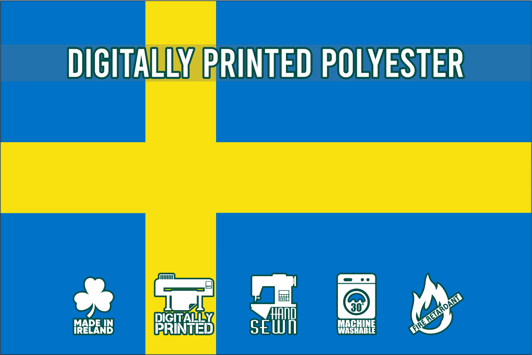 Unsere digital gedruckte schwedische Flagge ist in einer Vielzahl von Größen und Ausführungen erhältlich, die alle in der Bildergalerie detailliert beschrieben werden. Seit über 70 Jahren stellen wir auf unserem Gelände im Stadtzentrum von Dublin hochwertige internationale Flaggen her.