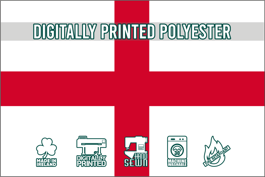 Unsere digital gedruckte englische St.-Georgs-Kreuz-Flagge ist in einer Vielzahl von Größen und Ausführungen erhältlich, die alle in der Bildergalerie detailliert beschrieben werden. Seit über 70 Jahren stellen wir auf unserem Gelände im Stadtzentrum von Dublin hochwertige internationale Flaggen her.