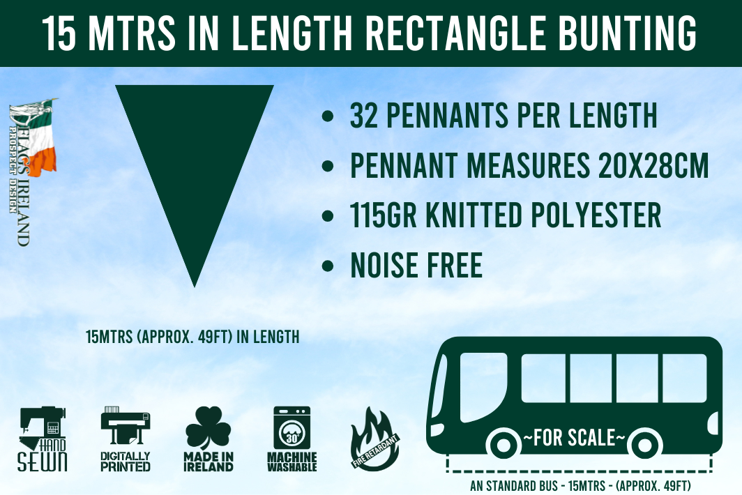 We make all our bunting in our Factory in Dublin City Centre, so if you do not see the bunting you would like, please contact our office on the phone +353 1 4753452 or by email sales@flagsireland.com