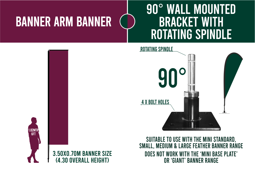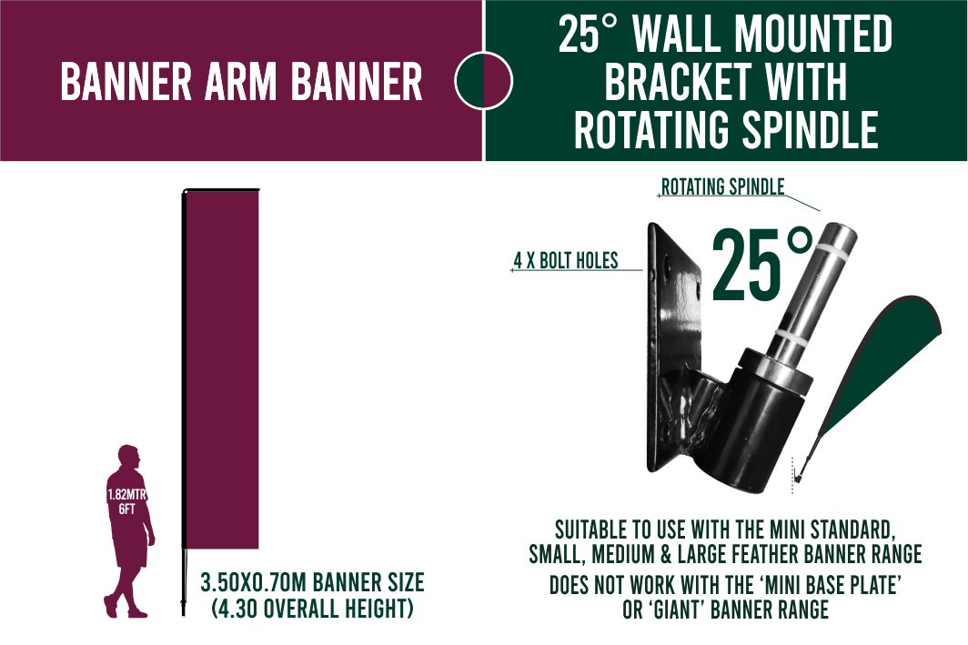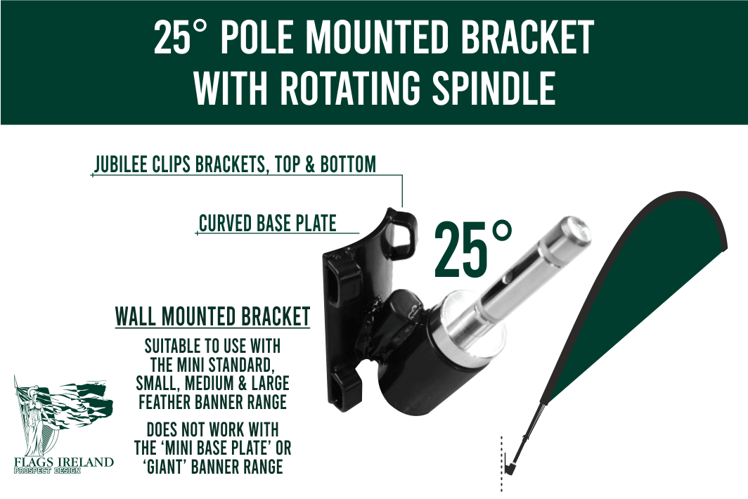 - 25° Pole Mounted Bracket (Rotating Spindle) – Securely attach your banner to poles and posts for an elevated advertising display.