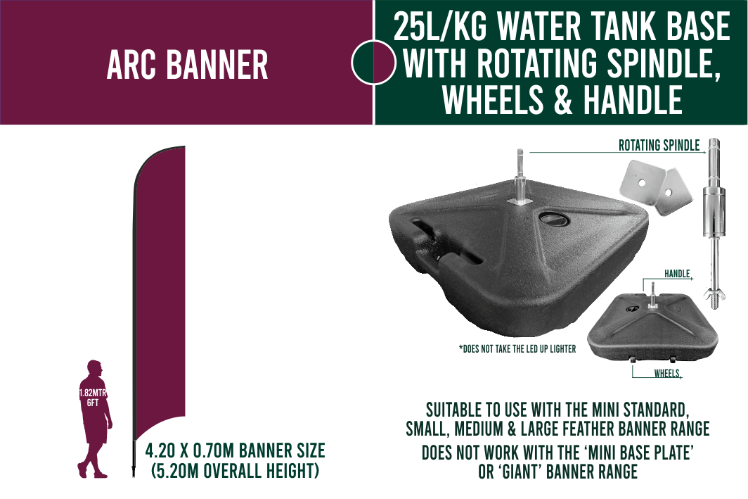 - 25L/KG Water Tank Base (Rotating Spindle) – A heavy-duty, fillable base that adds weight and wind resistance.