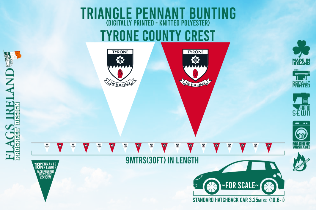 Our Tyrone County Crest bunting is made using our knitted polyester flag material so it is fully suitable for both indoor and outdoor(noise free) use.
