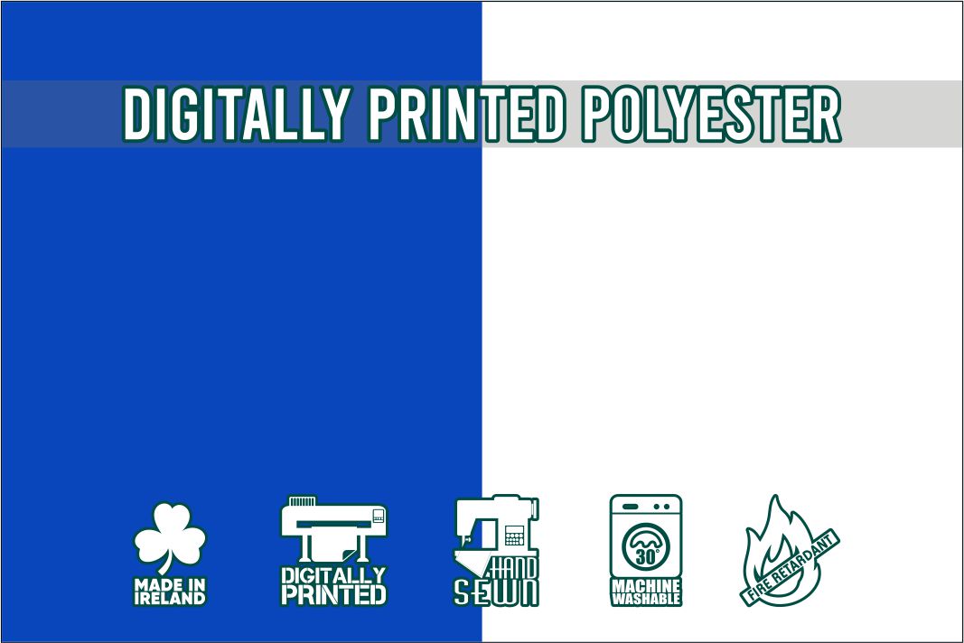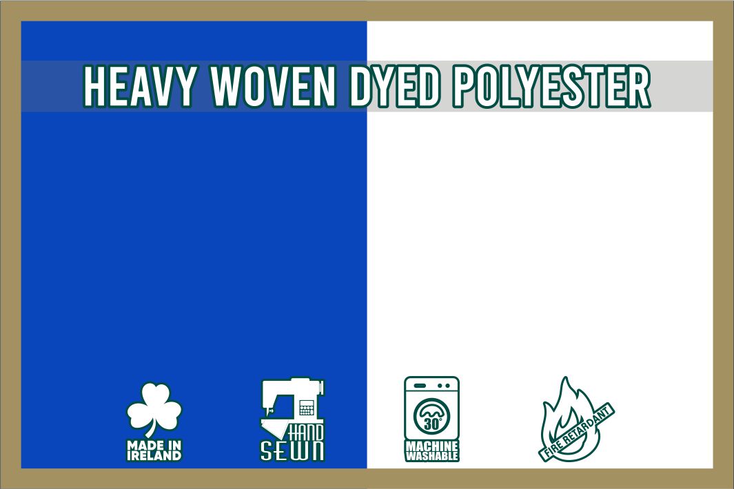 The Blue & White colour combination flag comes in two different materials with the details listed below. Both versions of this flag are proudly made in our factory in Dublin and are available to throughout Ireland and the rest of the world.
