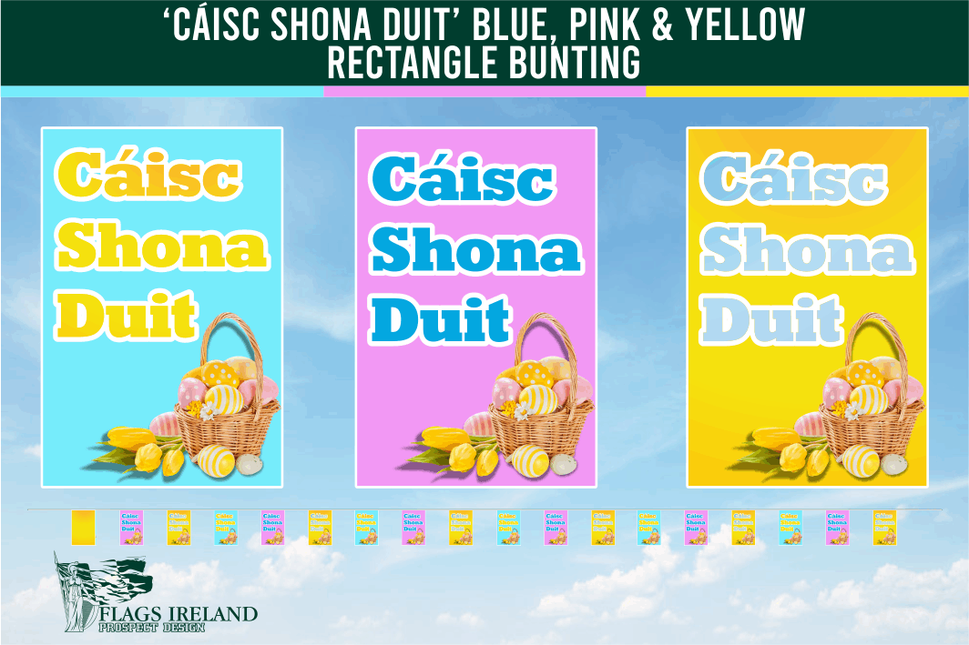 'Cáisc Shona Duit'(Happy Easter) Blue, Pink & Yellow Bunting
