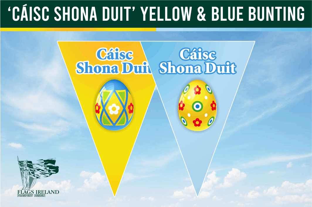 'Cáisc Shona Duit'(Happy Easter) Yellow & Blue Bunting – Premium Quality & Made in Ireland