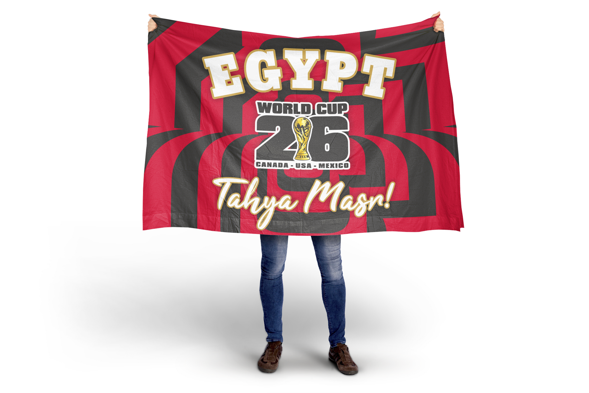 Egypt's striking Red and Black colours, bold “EGYPT!” lettering, the World Cup 26 graphic (Canada – USA – Mexico), and the slogan “Tahya Masr!” combine to create a strong, confident match-day flag. Ideal for homes, clubs, pubs, and supporter events throughout the tournament. Digitally printed on durable 115g 100% polyester for vibrant colour and lasting display.