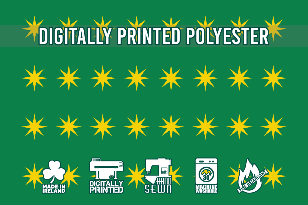We can make your flag to any size or finish you require. So if you do not see the size or finish you would like, please contact our office on the phone +353 1 4753452 or by email sales@flagsireland.com