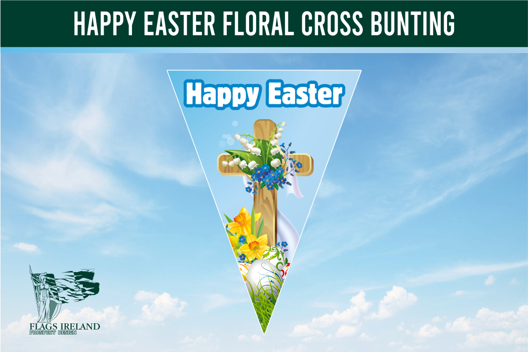 Celebrate the joy and triumph of Easter with our beautifully crafted Floral Cross bunting. Designed and manufactured in our Dublin City Centre factory, this premium-quality bunting is made from durable knitted polyester, making it weather-resistant, flame-retardant, and perfect for both indoor and outdoor use. Whether decorating churches, religious gatherings, Easter services, or home celebrations, this bunting is a meaningful way to honour the resurrection of Christ.