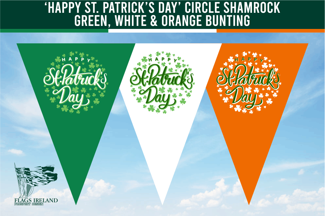 ‘Happy St. Patrick’s Day’ Circle Shamrock Green, White & Orange Bunting
