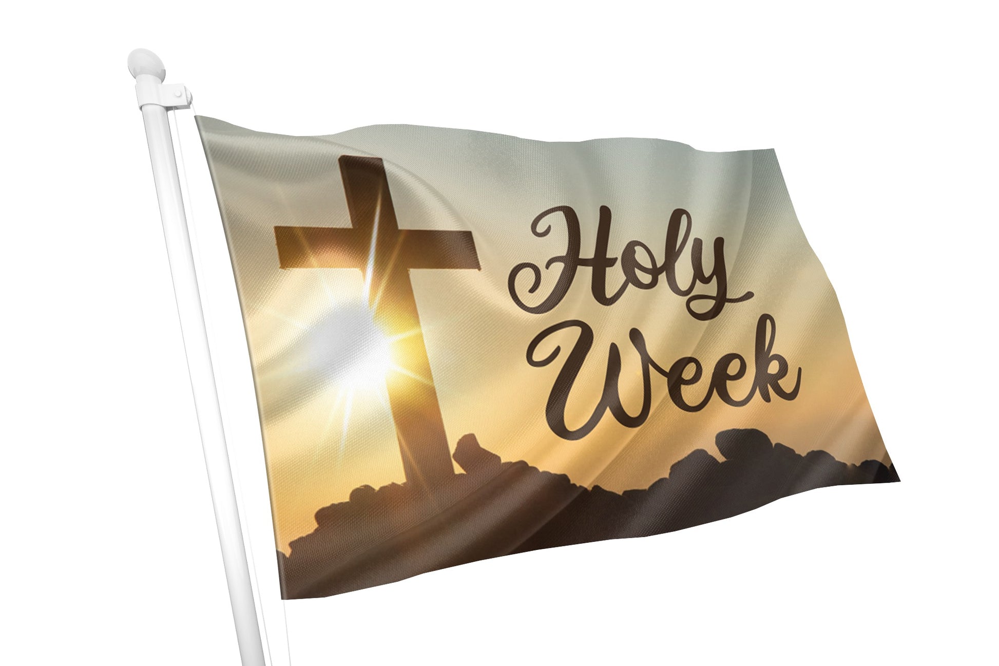 Honour the sacred journey of Holy Week with our beautifully crafted Holy Week Flag. Representing the events from Palm Sunday to Easter Sunday, this flag serves as a meaningful symbol of faith, reflection, and the triumph of Christ’s resurrection. Perfect for churches, religious processions, home displays, and Holy Week services, this flag is made from durable knitted polyester, ensuring a long-lasting and vibrant display both indoors and outdoors.