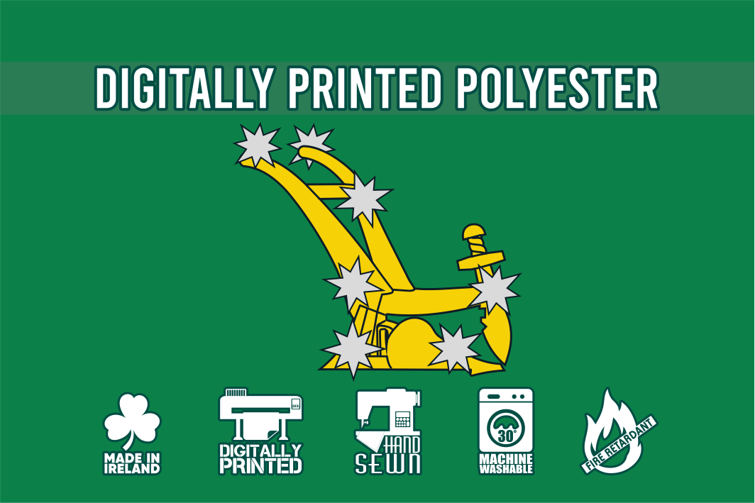 The Digitally printed Green Plough and The Stars flag is available in a range of sizes and finishes. We do also offer an Embroidered ceremonial version of the flag on request in a range of sizes.