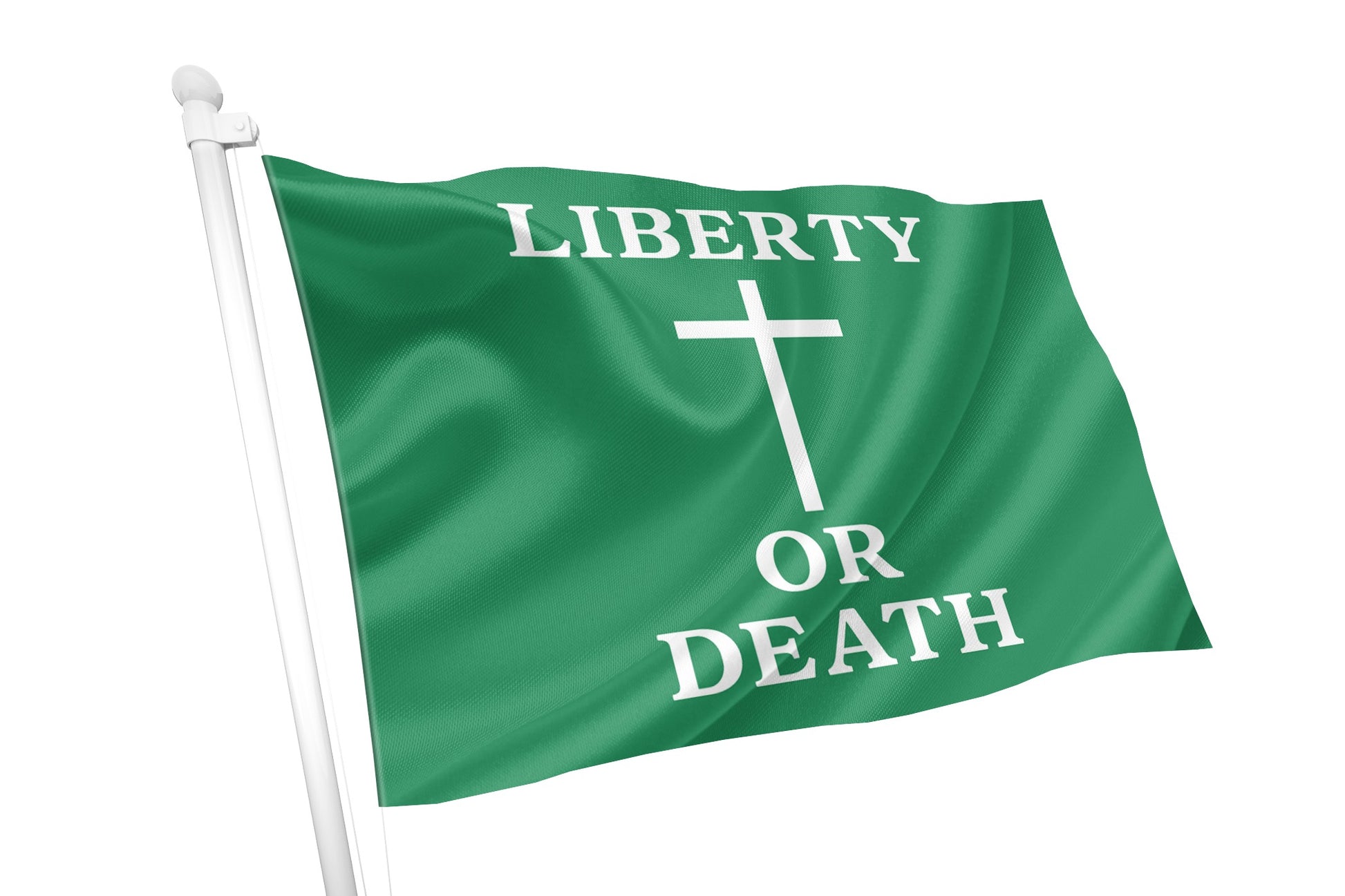 Proudly fly this striking historical flag inspired by the United Irishmen rebellion of 1798. Featuring the bold slogan “LIBERTY OR DEATH” and a stark white cross at its centre, this flag pays tribute to Father John Murphy and the Wexford rebels who fought for Irish freedom at the Battle of Arklow.