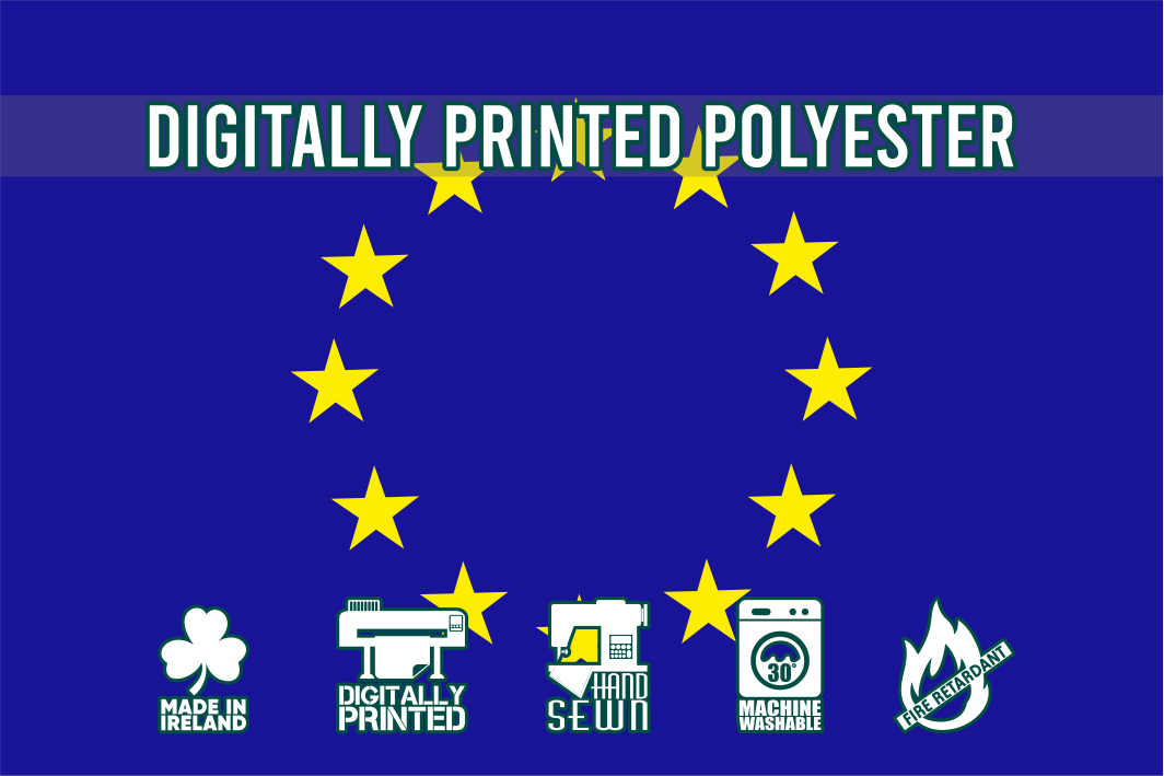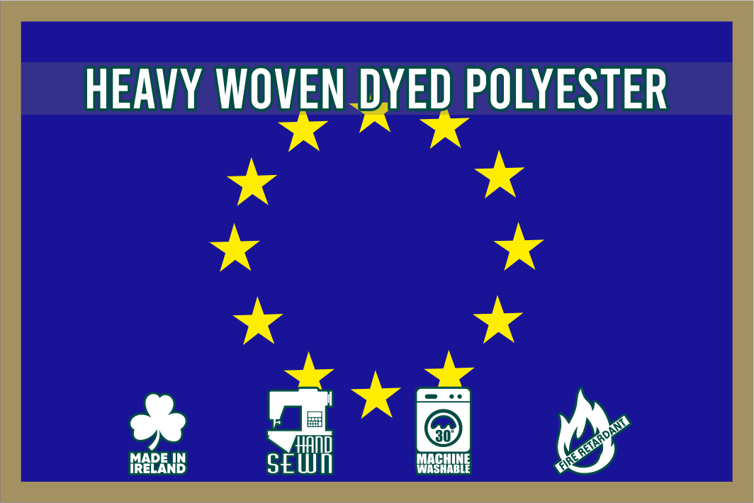 Nossa bandeira da UE de poliéster tingido e impresso digitalmente em tecido pesado está disponível em uma ampla variedade de tamanhos e acabamentos, todos detalhados na galeria de imagens. Há mais de 70 anos que fabricamos bandeiras internacionais de qualidade nas nossas instalações no centro da cidade de Dublin.