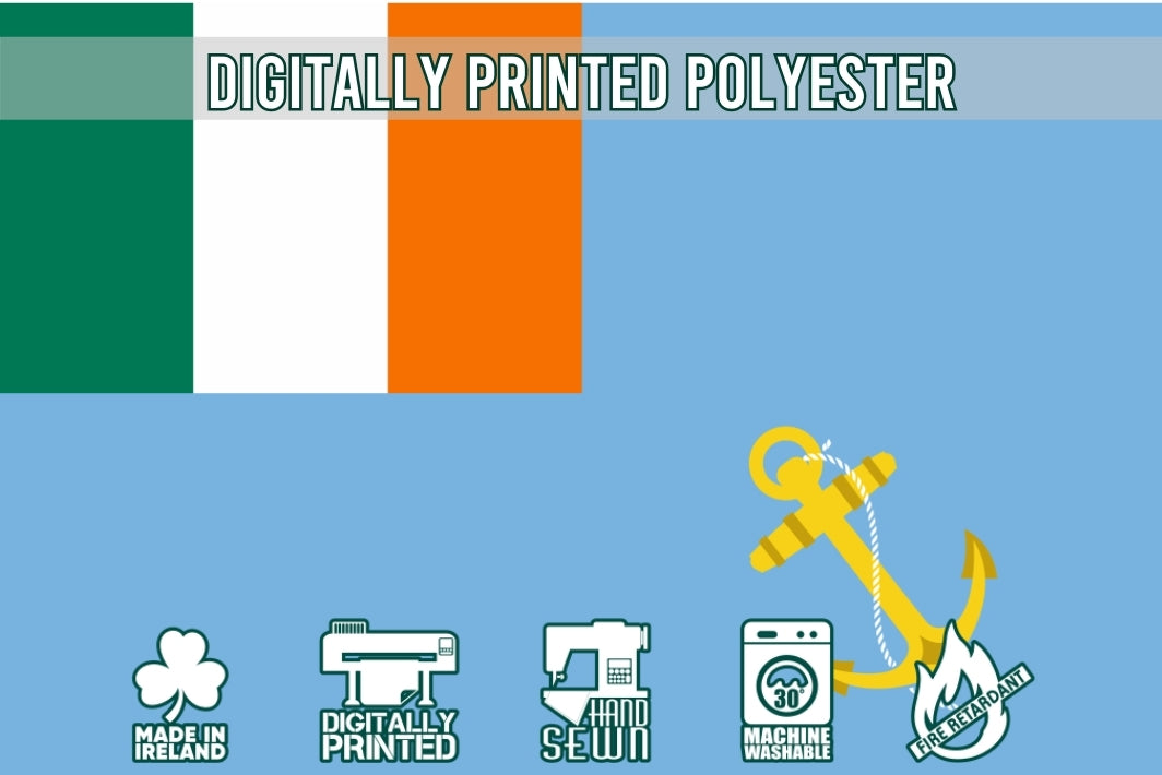 Each flag is made in our Dublin City Centre workshop using premium materials and professional finishing for long-lasting quality.