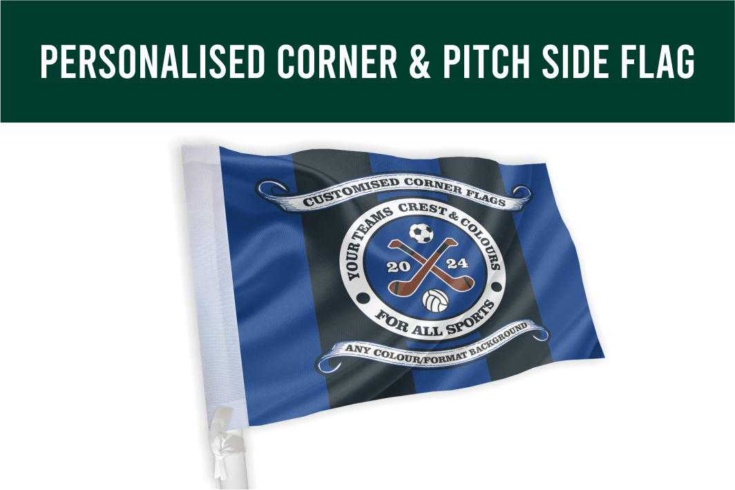 Elevate your team's presence on the field with our personalised corner and pitch side flags, expertly crafted in Dublin, Ireland. Whether you're looking for a single flag or need to outfit your entire field, our 35cm x 45cm flags are the perfect way to showcase your team's crest, colours, or custom text.