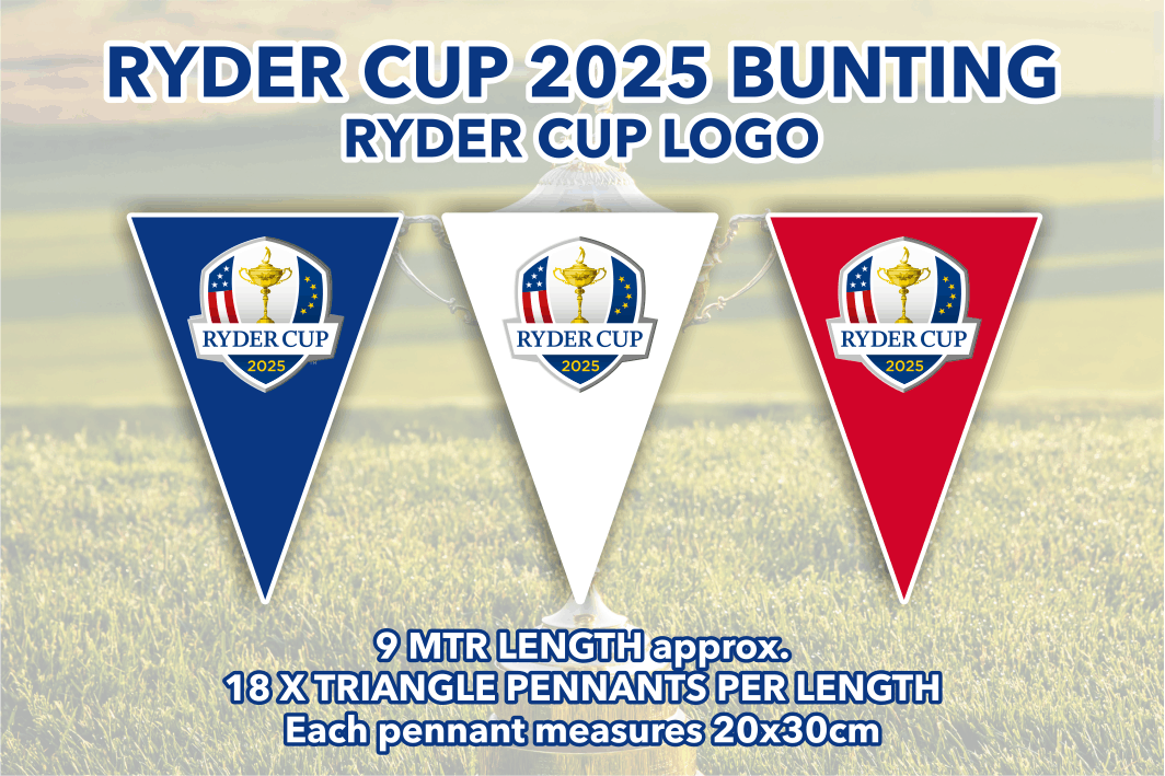 Ryder Cup 2023 Azul, Branco, Azul Triangle Bunting é feito usando nosso material de bandeira de malha de poliéster, por isso é totalmente adequado para uso interno e externo (sem ruído).